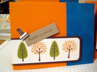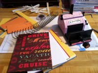 I loved making the invitations and ended up having a few girls nights to help me finish them. This ended up leading to whole series of homemade items for the wedding. I created “Family Tree” centerpieces for the reception. I got the idea from The Knot but put my own twist on it. We put photos from both of our families on magnolia branches in mason jars with river rock. I also created a gift/memory book. I used my Bind-it-All for the book and it turned out great! Finally to keep in line with the color scheme I created “Thank you” postcards to send out for gifts.