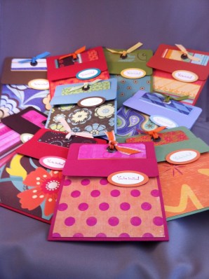 My husband and I were engaged in February and married in May. With that short 3 months to plan a wedding I decided to take on making my own invites. We were going to have a casual wedding so I thought it would be fun to create colorful invites with different papers. I ended up creating 10 different designs of the same card.