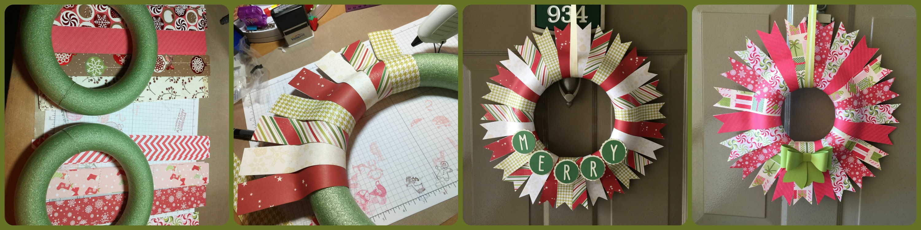 I loved making this wreath and made a couple of them. I overlapped my paper a little more than the video showed and I also used a hot glue gun to adhere my paper on the wreath. This allowed the wreath to be stronger than if I just used a craft adhesive.