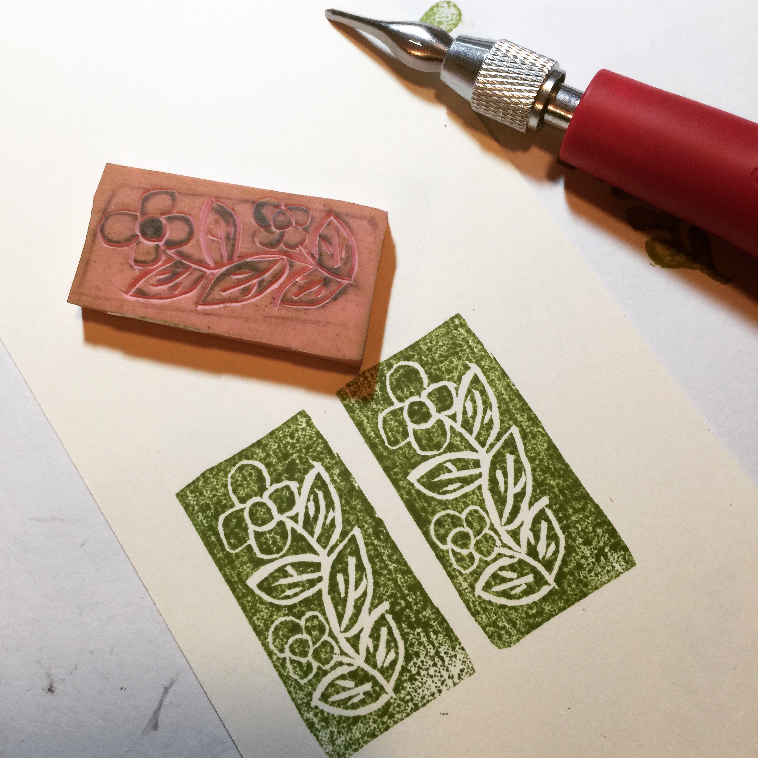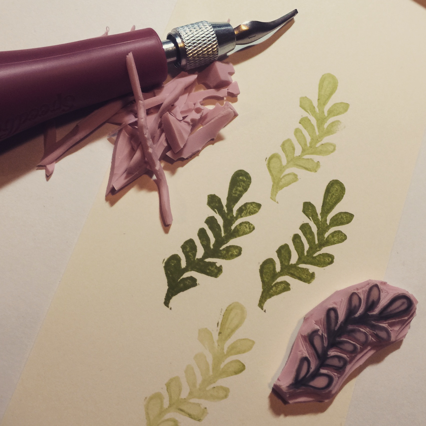 On Friday night, I was packaging some things I sold on ebay and when I finished I had this overwhelming urge to make something. This year, I want to take my crafting to another level. I want to start creating rubber stamps and I have played around a little but I’m not a professional by any means. So I pulled out some sheets of rubber and started looking around on Pinterest to see what I could find about carving or something that would inspire me. I decided to carve a branch and a flower on a vine.