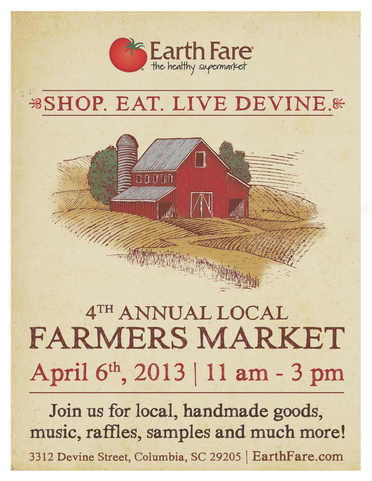 Soda City – This market is every Saturday from 9:00-1:00. It’s open year round so you never have to be without something to do on Saturday morning. The vendors vary from local farmers to handmade items, baked goods to vintage fashion.